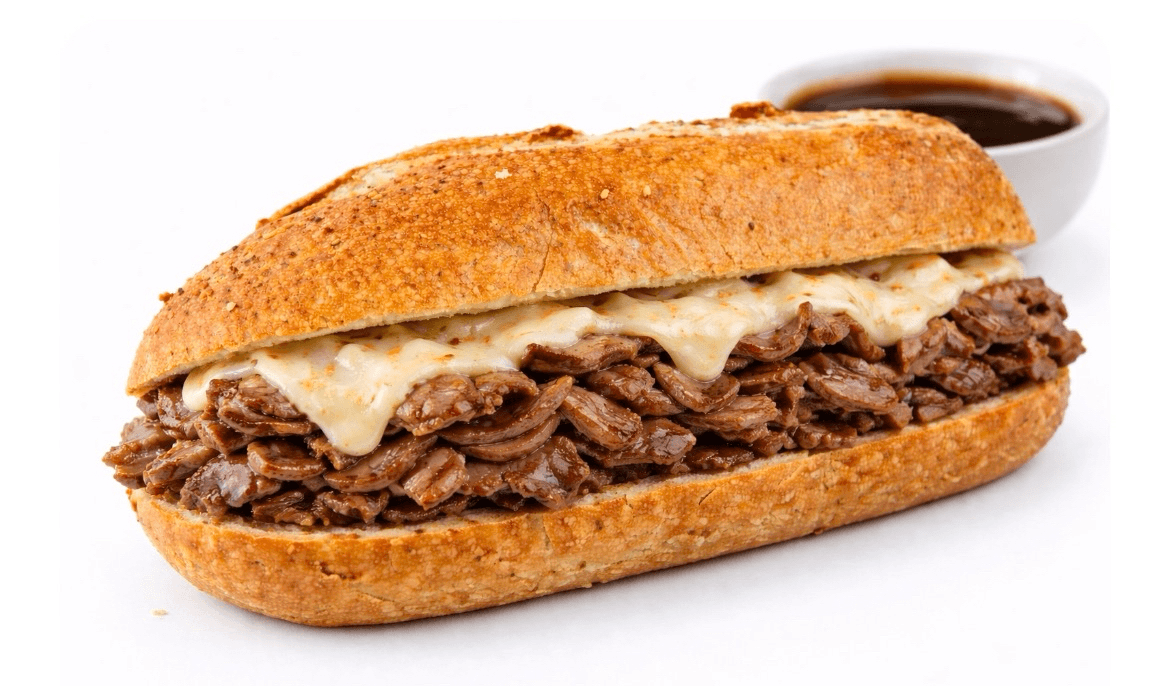 Grilled roast beef, brown gravy, mozzarella cheese