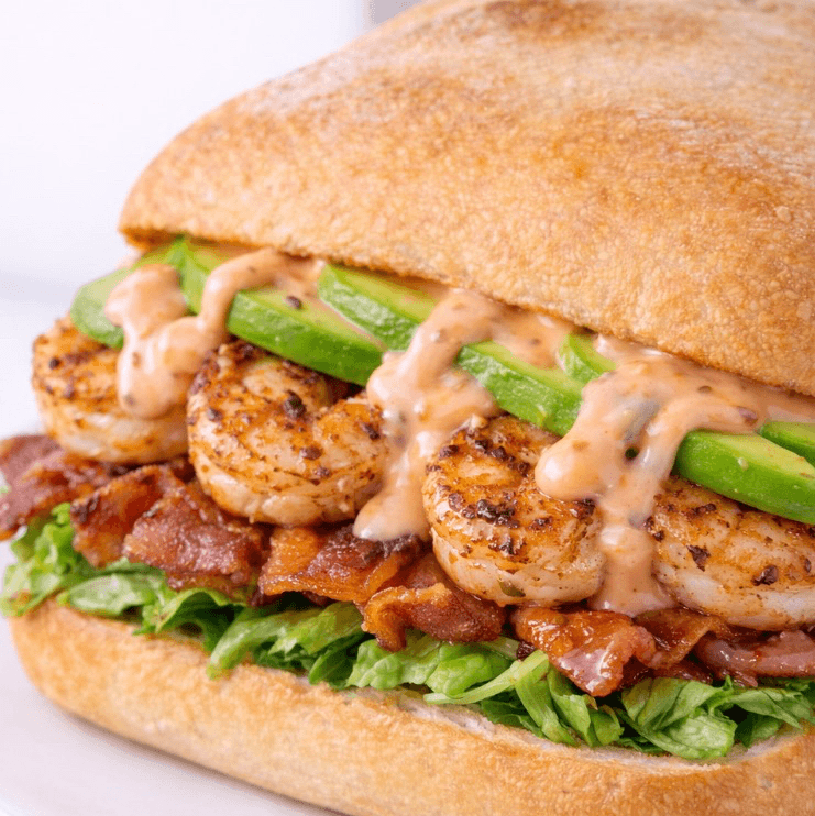 Grilled Cajun Shrimp, avocado, crispy bacon, romaine, tomatoes, 1000 Island dressing