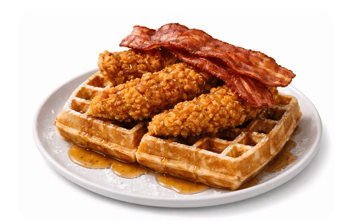 Buttermilk waffle served with fried chicken and bacon