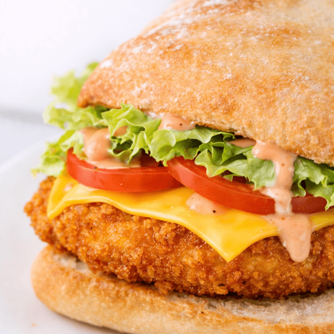 Crispy chicken cutlet, lettuce, tomato, American cheese, 1000 Island dressing