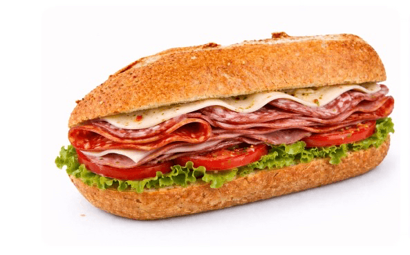 Genoa salami, mortadella, ham cappy, pepperoni, provolone, lettuce, tomato, Italian dressing