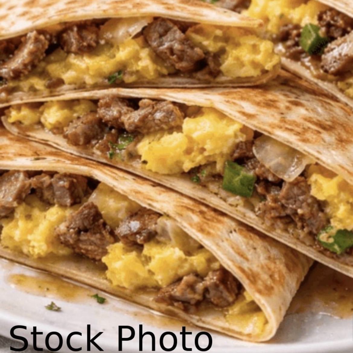Grilled steak with scrambled eggs, mozzarella cheese (quesadilla style)