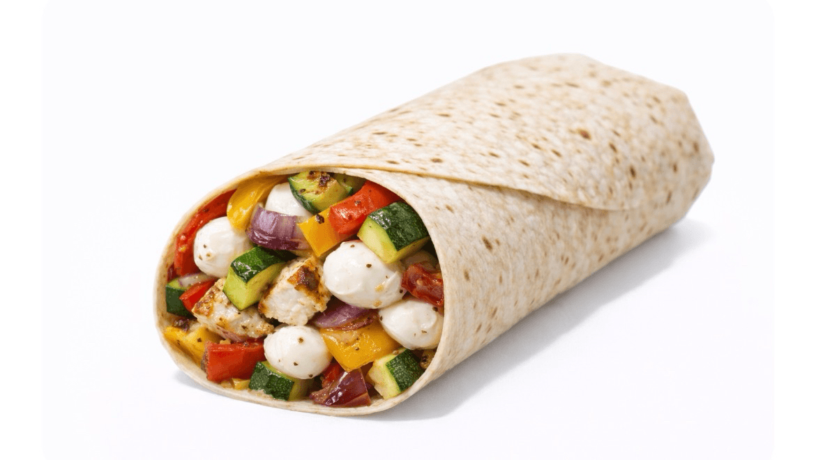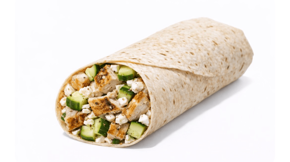3 egg whites with feta cheese, tomatoes in a wrap