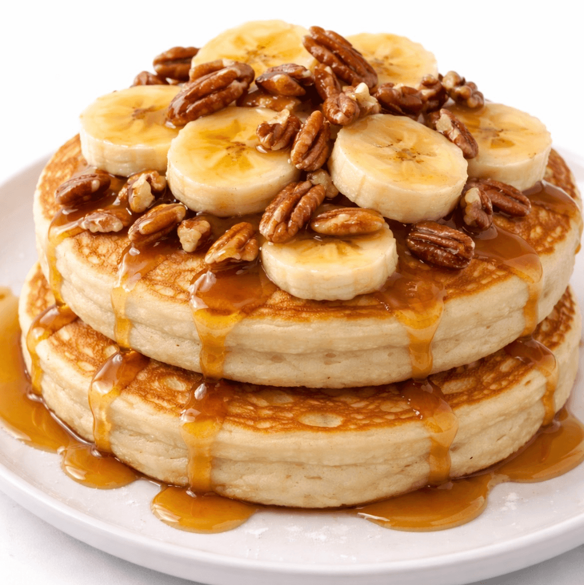 2 buttermilk pancakes, fresh bananas, pecans, caramel